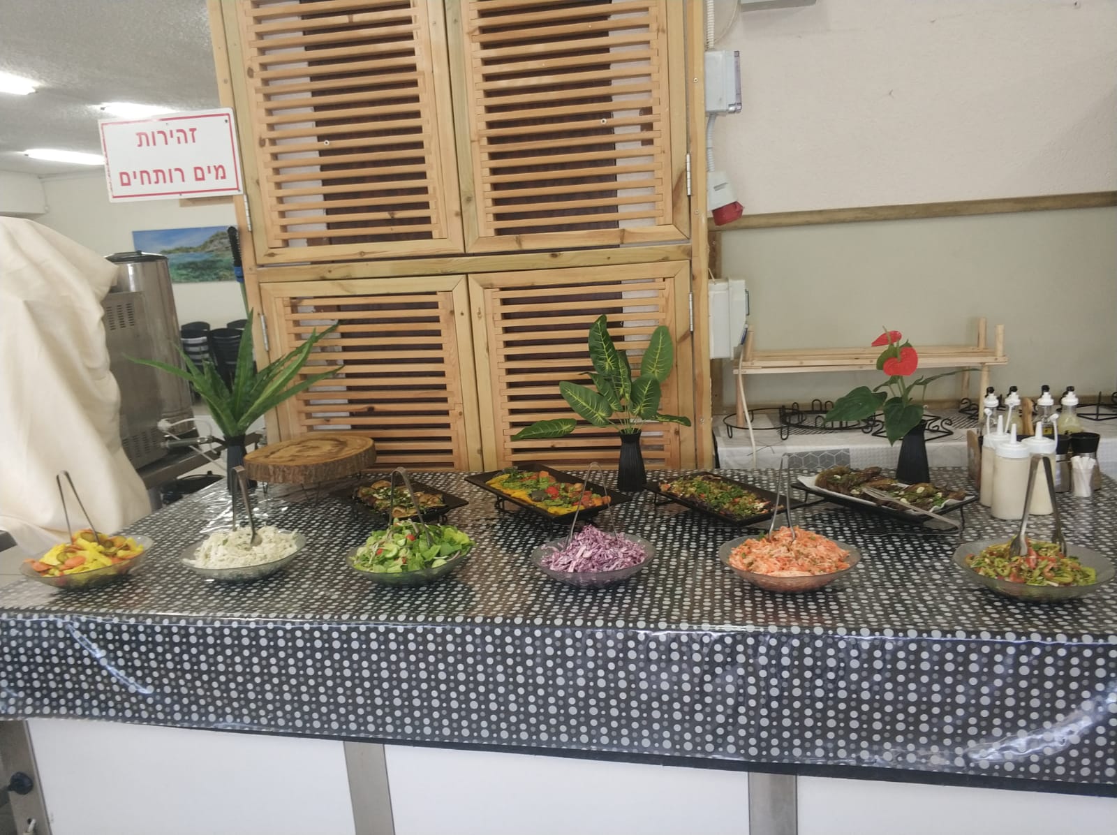 The dining hall serves kosher meals under the regular kosher supervision of the Hof Hacarmel local authority.